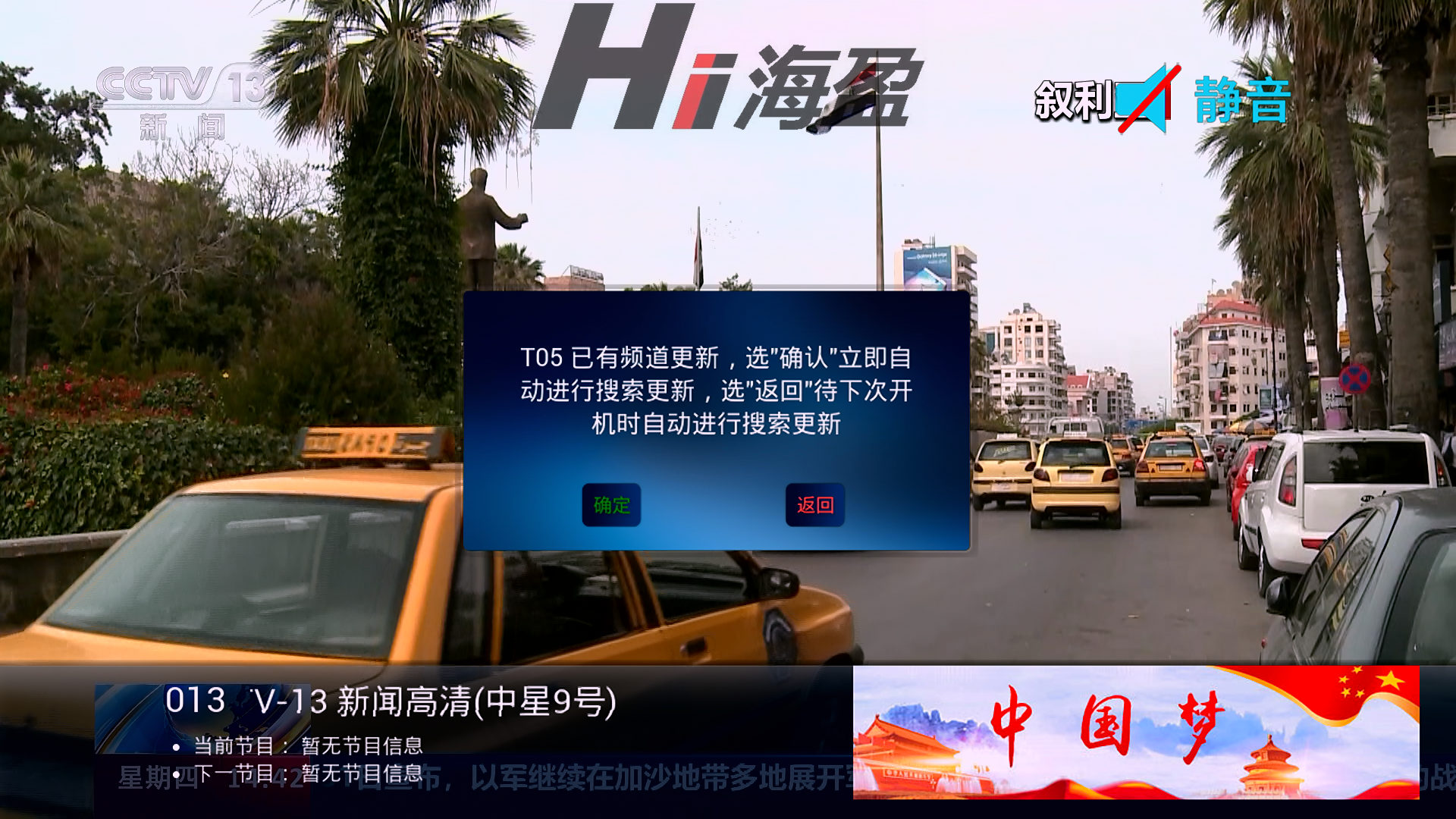 新一代戶戶通開機后,顯示頻道列表更新,提示進行搜索。