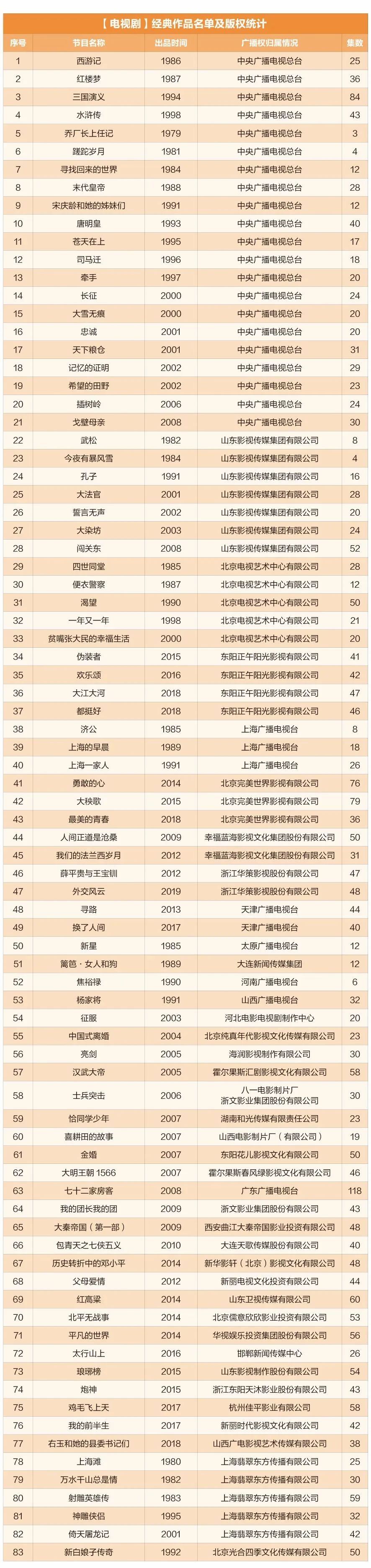 近期即將播出的“重溫經(jīng)典”百部展播作品名單